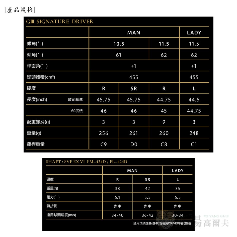 【飛揚高爾夫】DAIWA GIII SIGNATURE VI(金)一號木桿(高反發),碳身SVF EX VI FM-424D(日規) 特點: