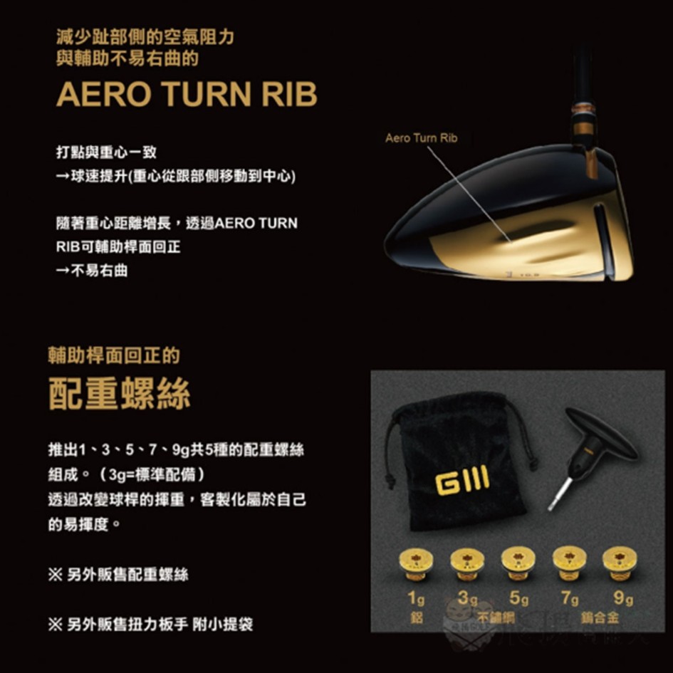 在GⅢ史上最輕且具壓倒性初速提升的高反發球頭,趾部側搭載AERO TURN RIB更能達到降低空氣阻力的效果。