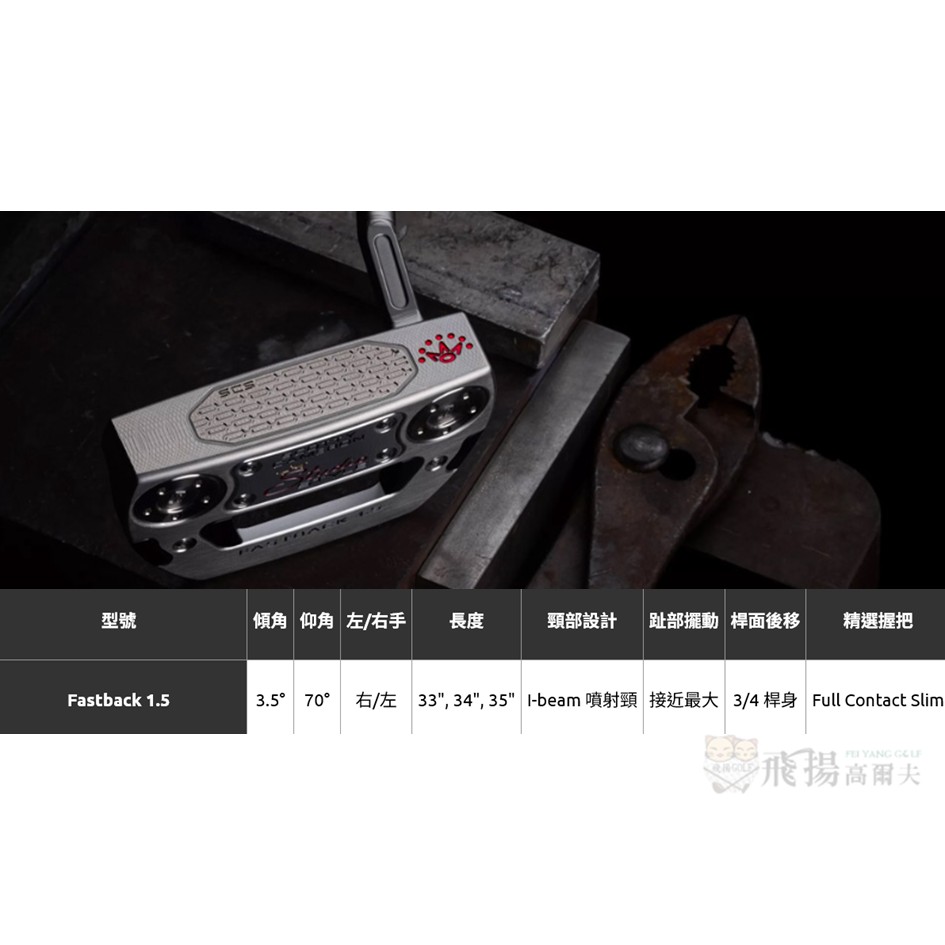 Studio Style Fastback 1.5 以 I-beam 噴射頸(Jet Neck) 設計與同系列其他型號區隔,這款推桿強調桿頭自然趨勢,讓球員在推桿時擁有更好的桿面控制感,適合喜歡刀背推桿手感,但希望獲得緊湊型槌頭推桿性能的球員。