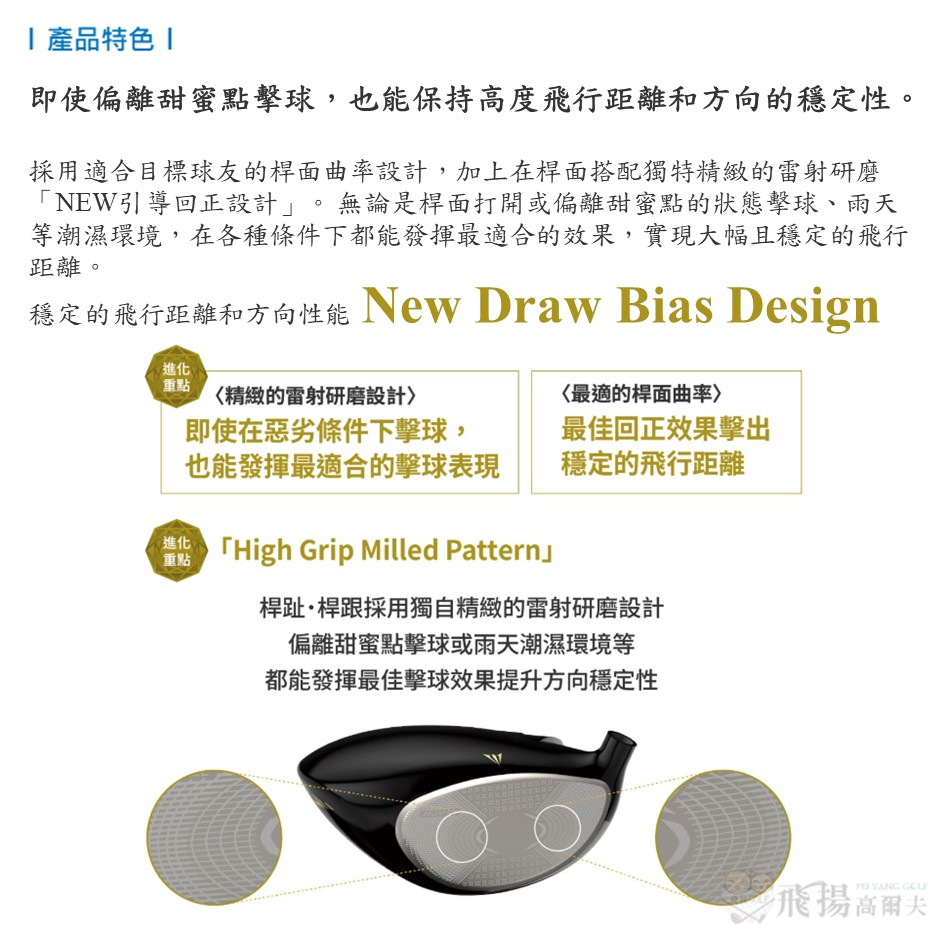 ● 即使偏離甜蜜點擊球,也能保持高度飛行距離和方向的穩定性。