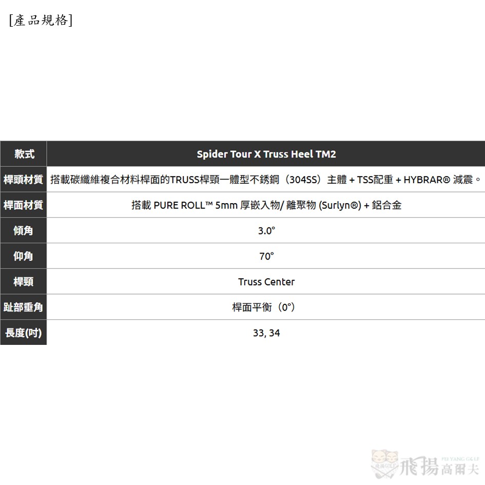 【飛揚高爾夫】TaylorMade Spider Tour X Truss Center TM2 推桿