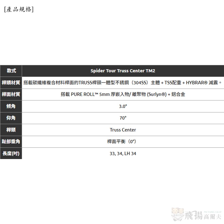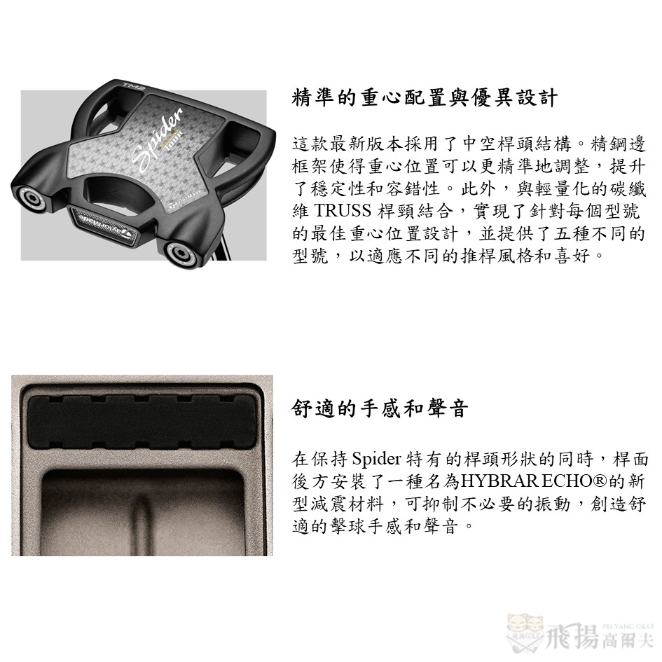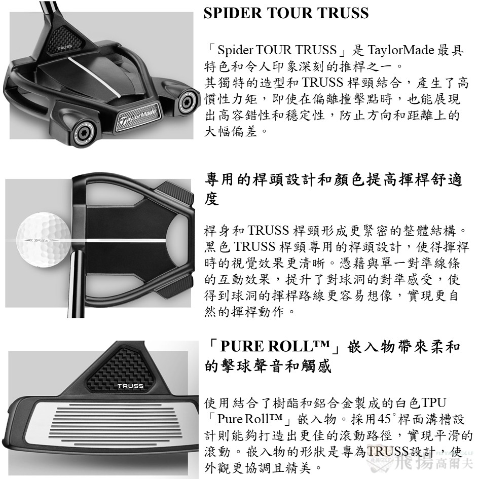 此外,首次將廣受眾多高爾夫球手信賴的「TRUSS 桿頸」與之結合,創造出全新的「Spider TOUR TRUSS」,具備更強的抗失準性和高穩定性。