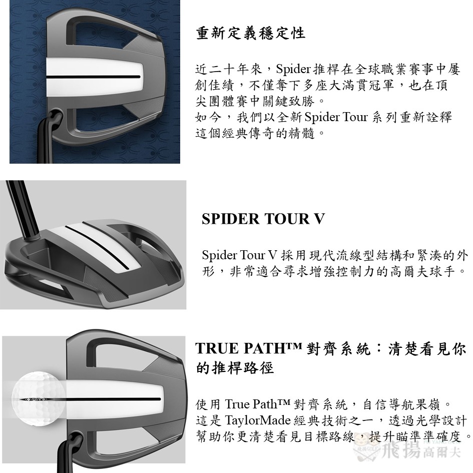 【飛揚高爾夫】TaylorMade Spider Tour V DB (V7) 推桿 SuperStroke ,#N07745