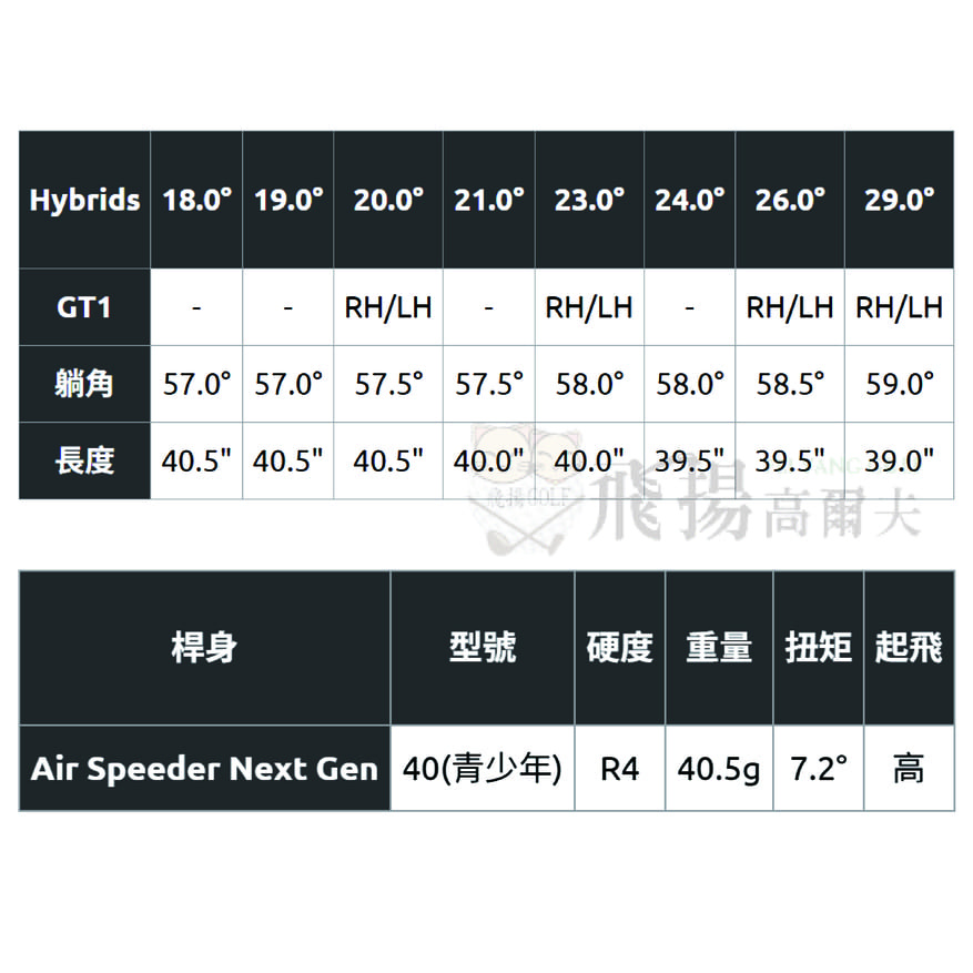 【飛揚高爾夫】'25 Titleist GT1 Hybrids ,碳身Air Speeder Next Gen 40(青少年)(亞規)