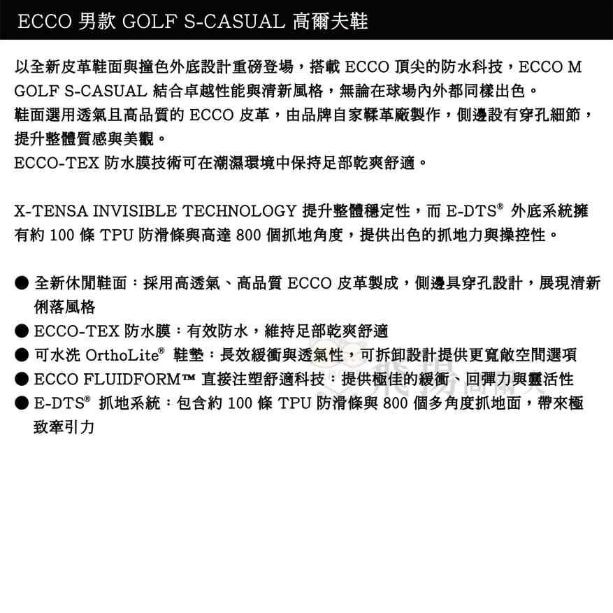 【飛揚高爾夫】ecco 男鞋(無釘) S-Casual #102814-01001 ,黑