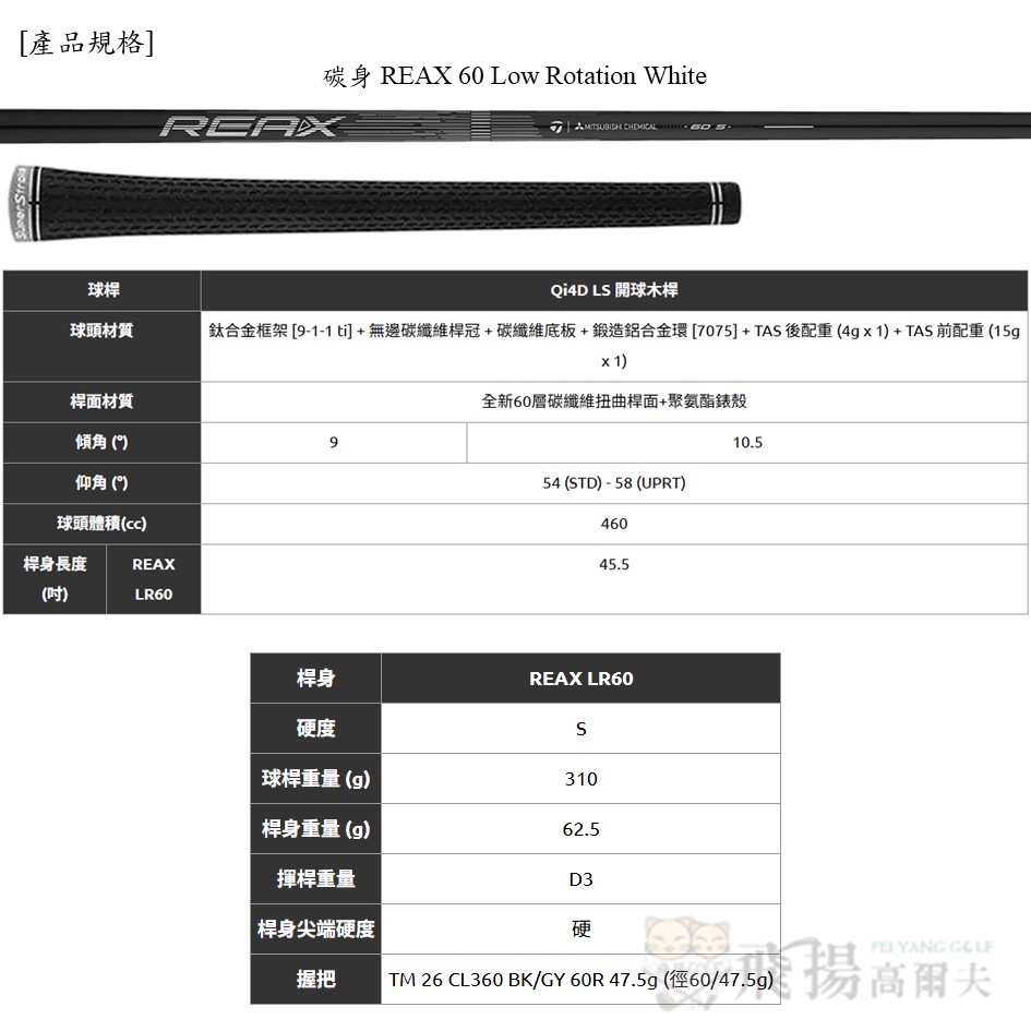 【飛揚高爾夫】'26 TaylorMade Qi4D LS 一號木桿 ,碳身REAX 60 (日規)