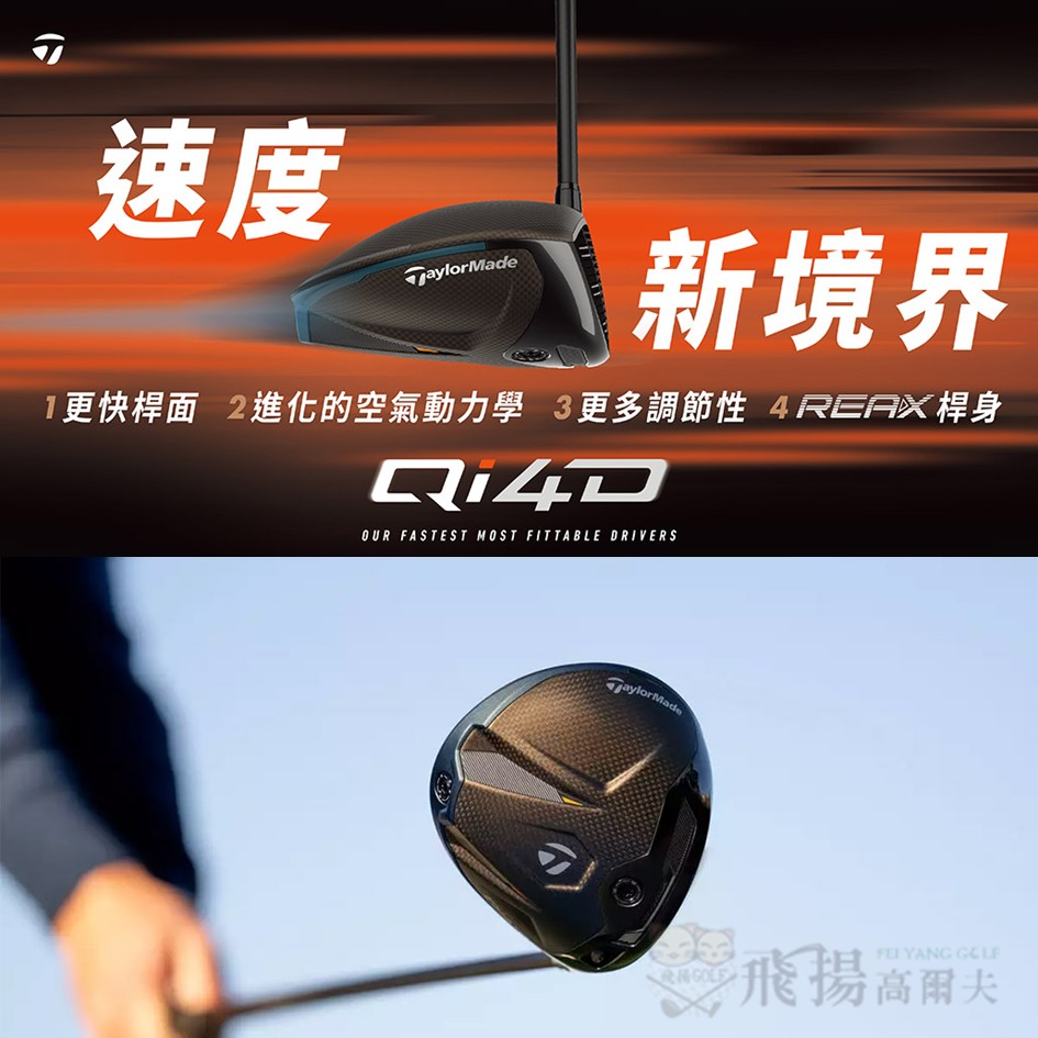 速度的新定義。泰勒梅(TaylorMade)面對其品牌 DNA 中的「飛行性能」,為了追求極致速度而開發出「Qi4D」開球木桿。透過進化的第五代「碳纖維桿面」,不僅提升了飛行距離,更優化了後旋量。此外,進化的球頭形狀可有效降低空氣阻力,進一步提升揮桿速度。除了提供支援各類球員飛行需求的四款型號,再搭配全新的「REAX」桿身,讓您飛行的可能性無限延伸。