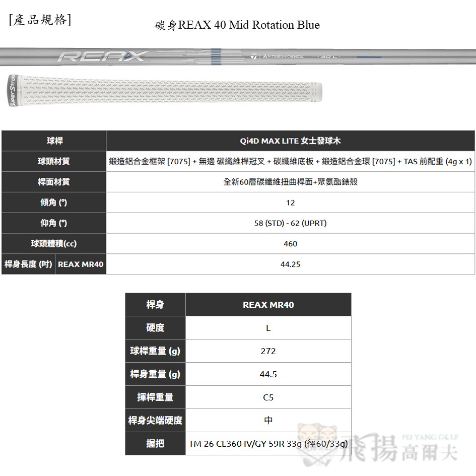 ※ 桿身:碳身REAX 40 Mid Rotation Blue