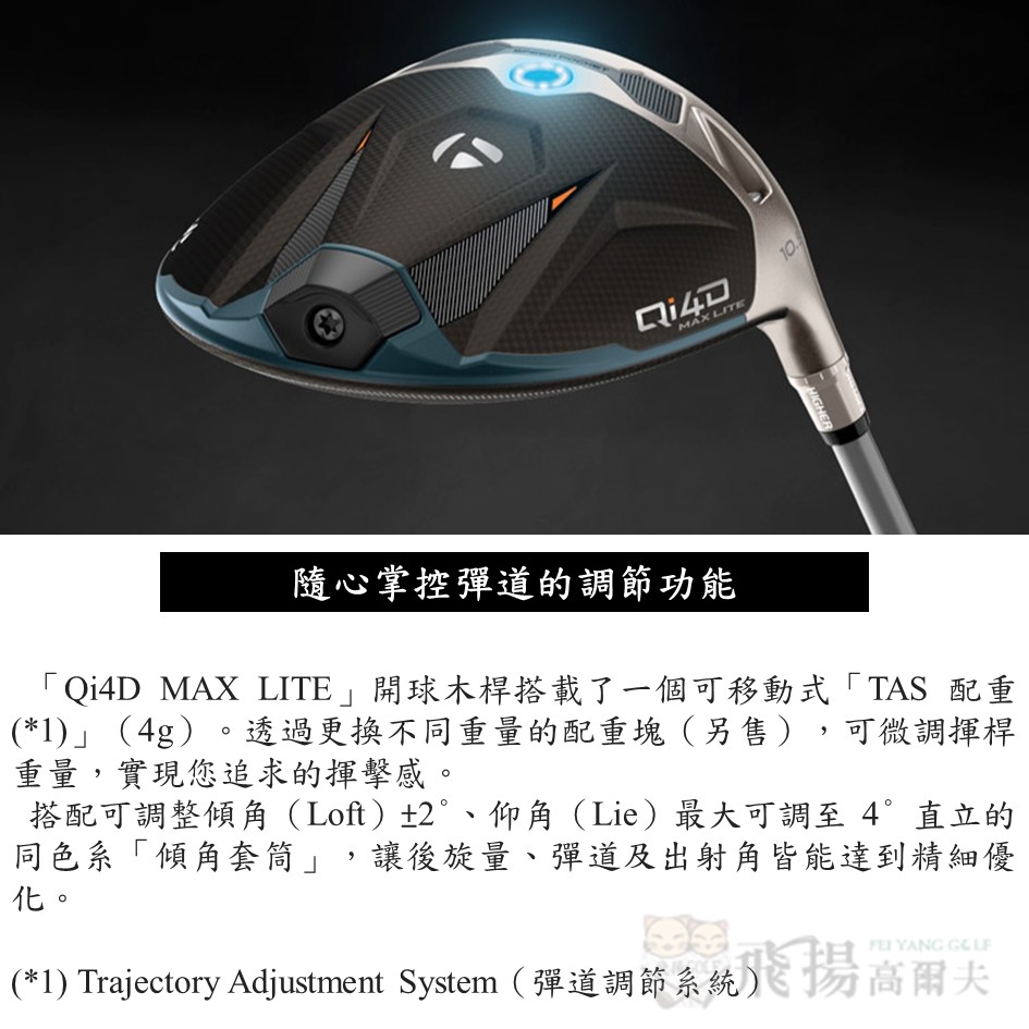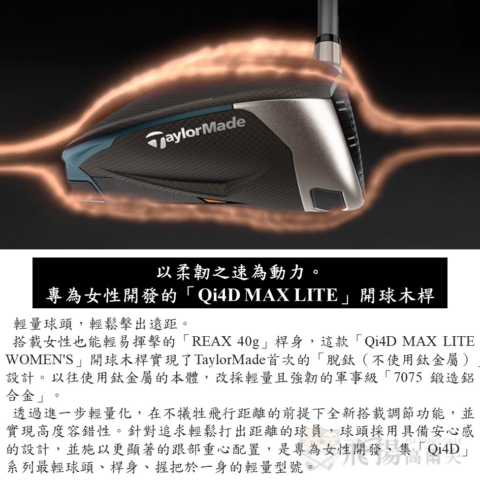 【飛揚高爾夫】'26 TaylorMade Qi4D Max Lite 一號木桿 ,碳身REAX 40 Lady(日規)