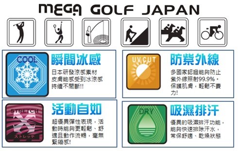 日本MEGA專業研發【冰絲纖維】,能夠長效降溫,防止紫外線99.9%的功能。