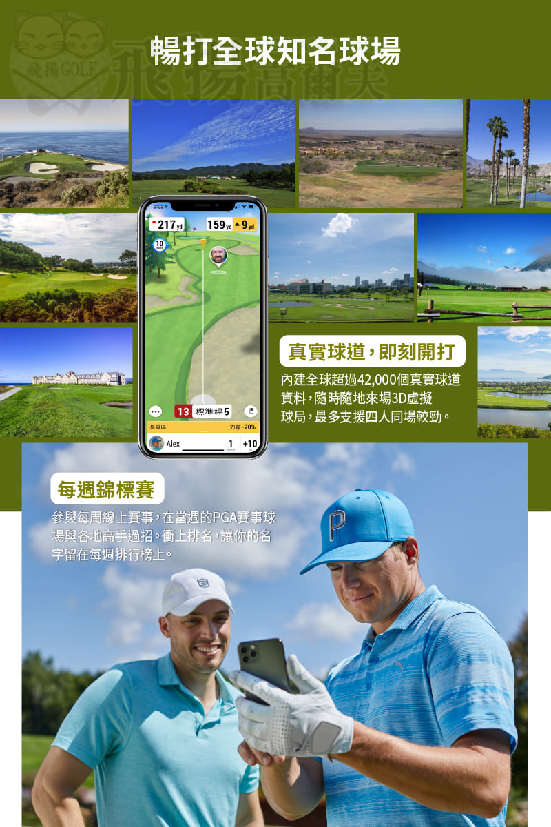 在全球 42 多個 000D 球場上玩虛擬回合,參加每周錦標賽,分數顯示在 Garmin Golf™² 應用程序的世界排行榜上。