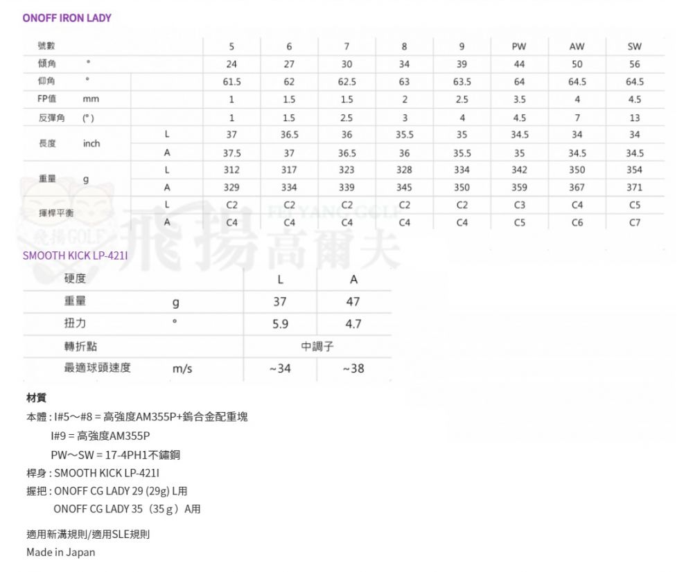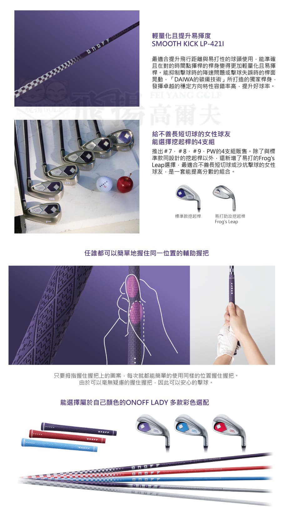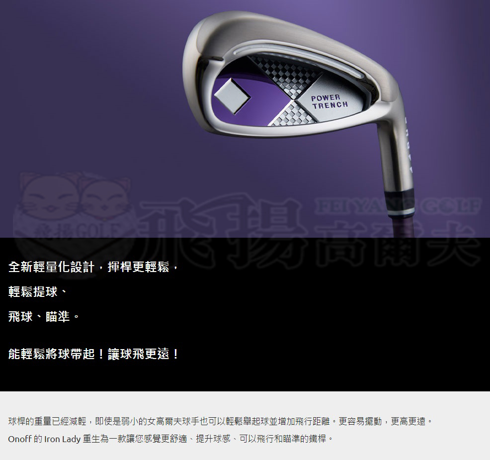 新ONOFF LADY球桿輕量化,提升易揮度,新一代LADY為讓女性球友能擊出遠飛球的球桿。