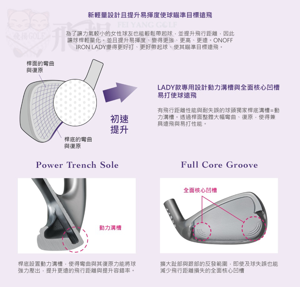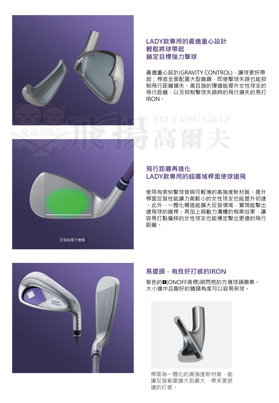 為了讓女性球友能擊出遠飛球以及易打性,持續進化的女性專用設計ONOFF LADY。