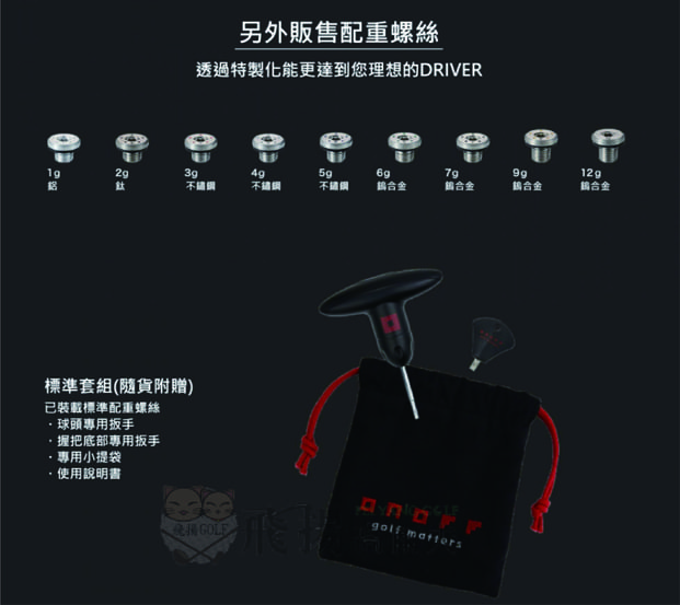 配重螺絲×3 (2g=鈦 / 4g=不鏽鋼 / 6g=鎢合金)