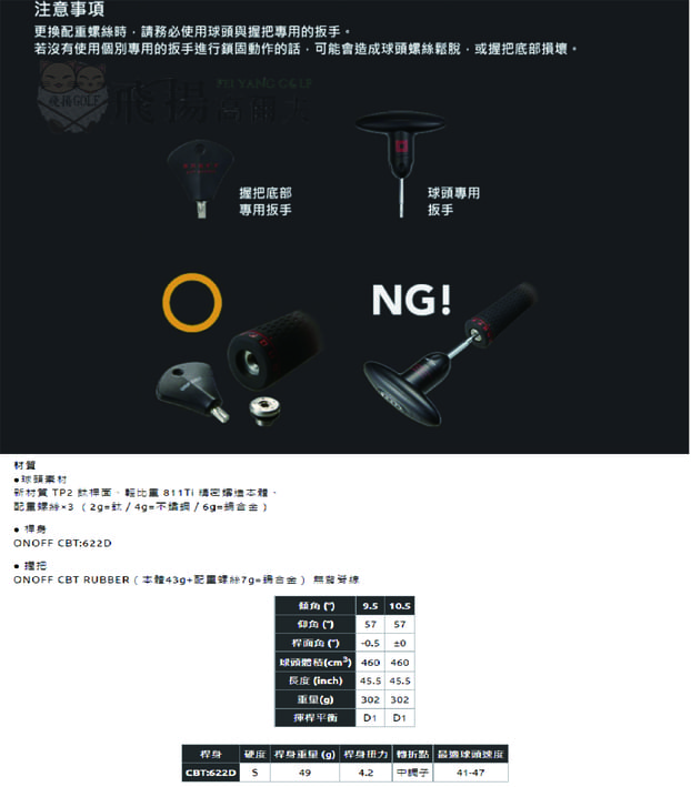 ONOFF CBT RUBBER(本體43g+配重螺絲7g=鎢合金) 無背脊線