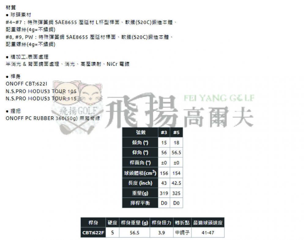 【飛揚高爾夫】 '22 ONOFF KURO 球道木桿,碳身CBT:622F(日規) 球道木桿