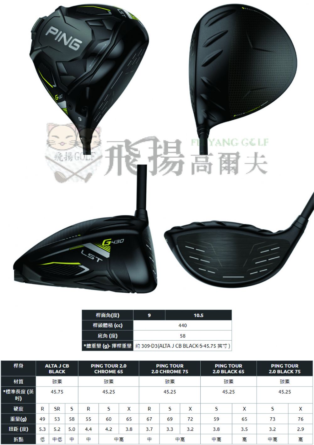 【飛揚高爾夫】'22 Ping G430 LST一號木桿 ,碳身ALTA J CB BLACK(日規) 1號木桿