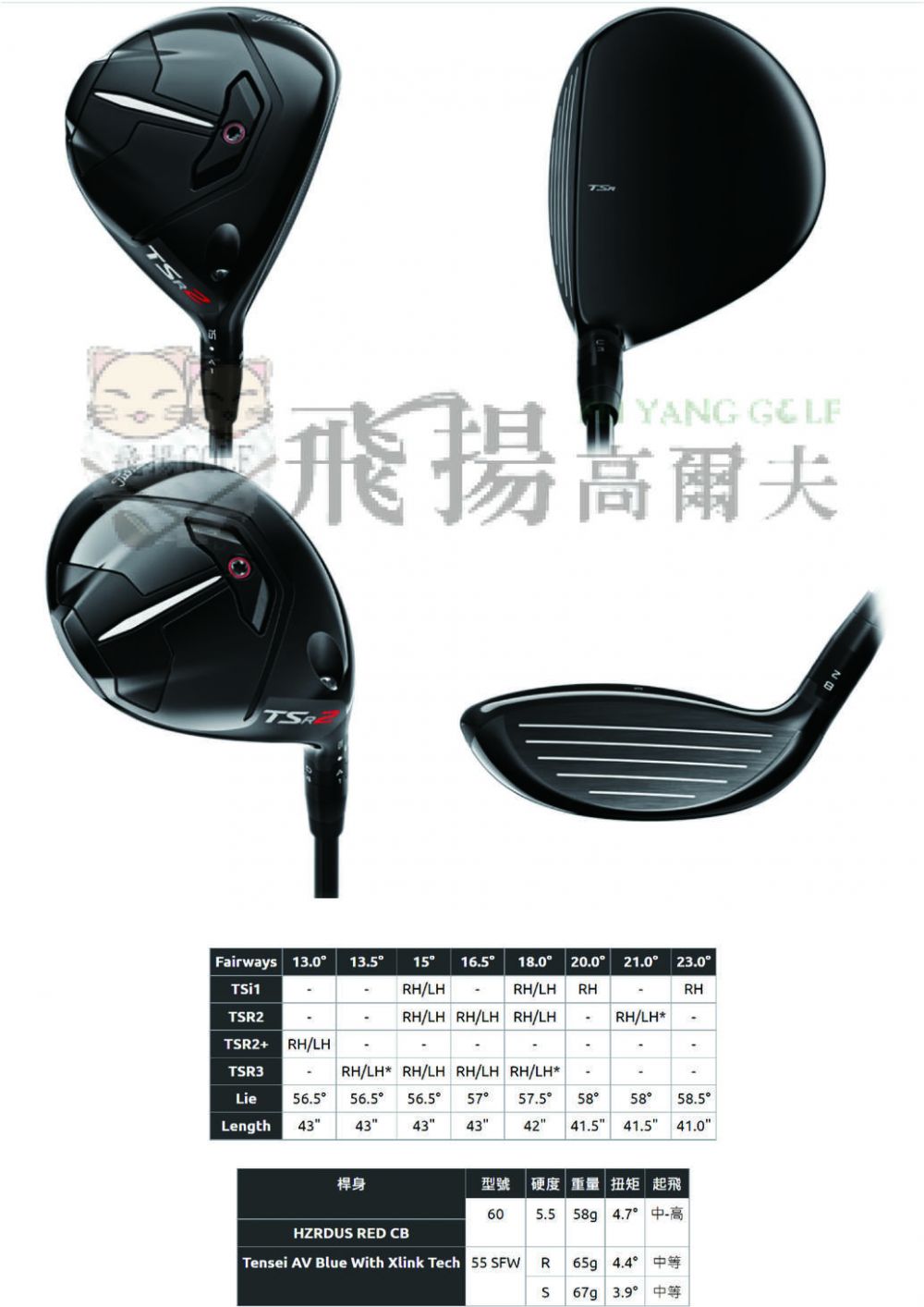 【飛揚高爾夫】'22 Titleist TSR2 球道木桿,碳身Mitsubishi Tensei AV Blue with Xlink Tech 65(亞規)球道木桿