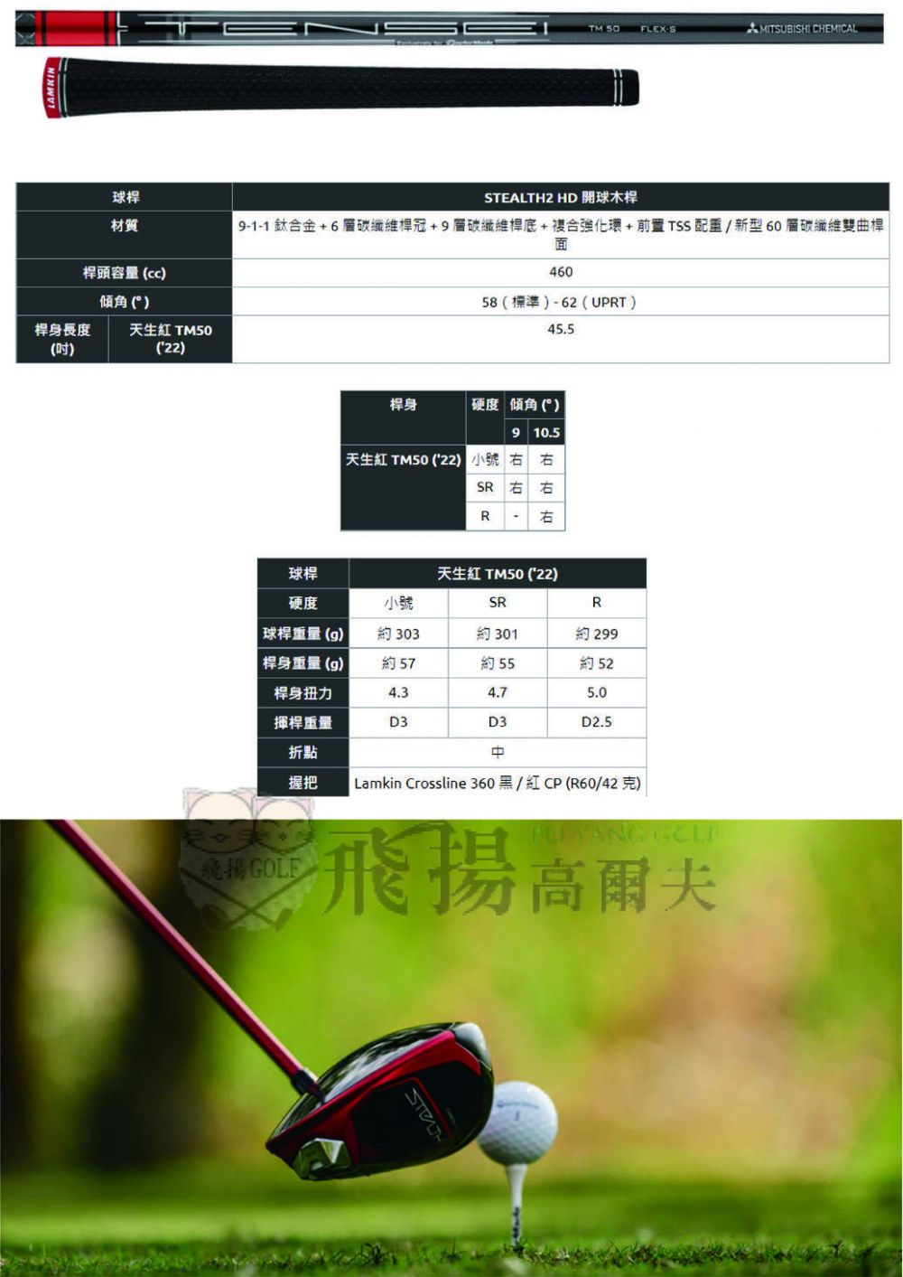 【飛揚高爾夫】'23 TaylorMade STEALTH 2 HD 一號木桿,碳身Tensei Red TM50 日規
