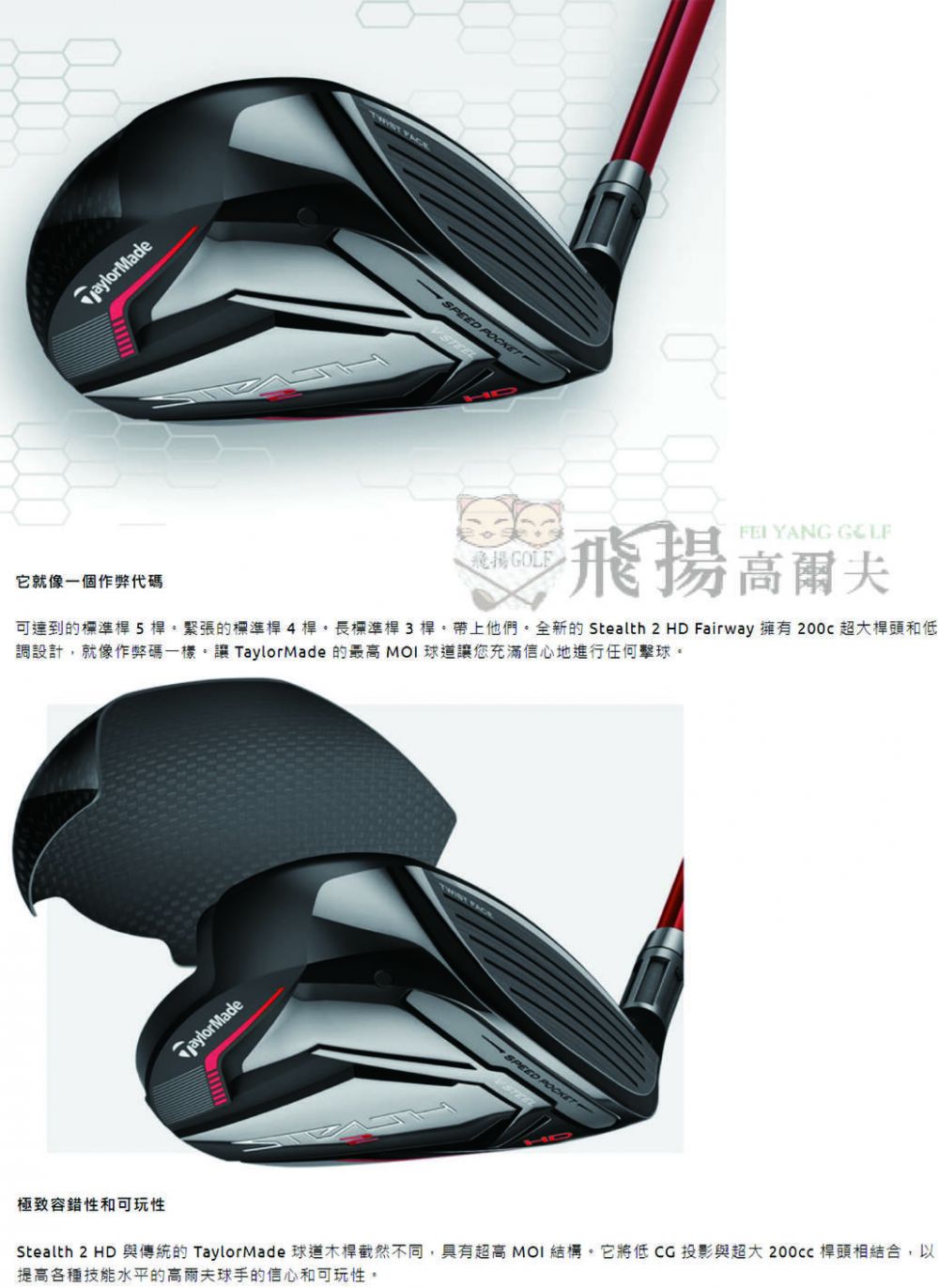 和過去 TaylorMade 球道木桿截然不同,STEALTH 2 HD 球道木桿具有吸睛的高慣性特色,外觀上就相當搶眼,結合低重心、 高慣性創造出眾的性能表現,超大的 200cc 桿頭外型低調,但可高效提供各種差點球友的信心與易打性