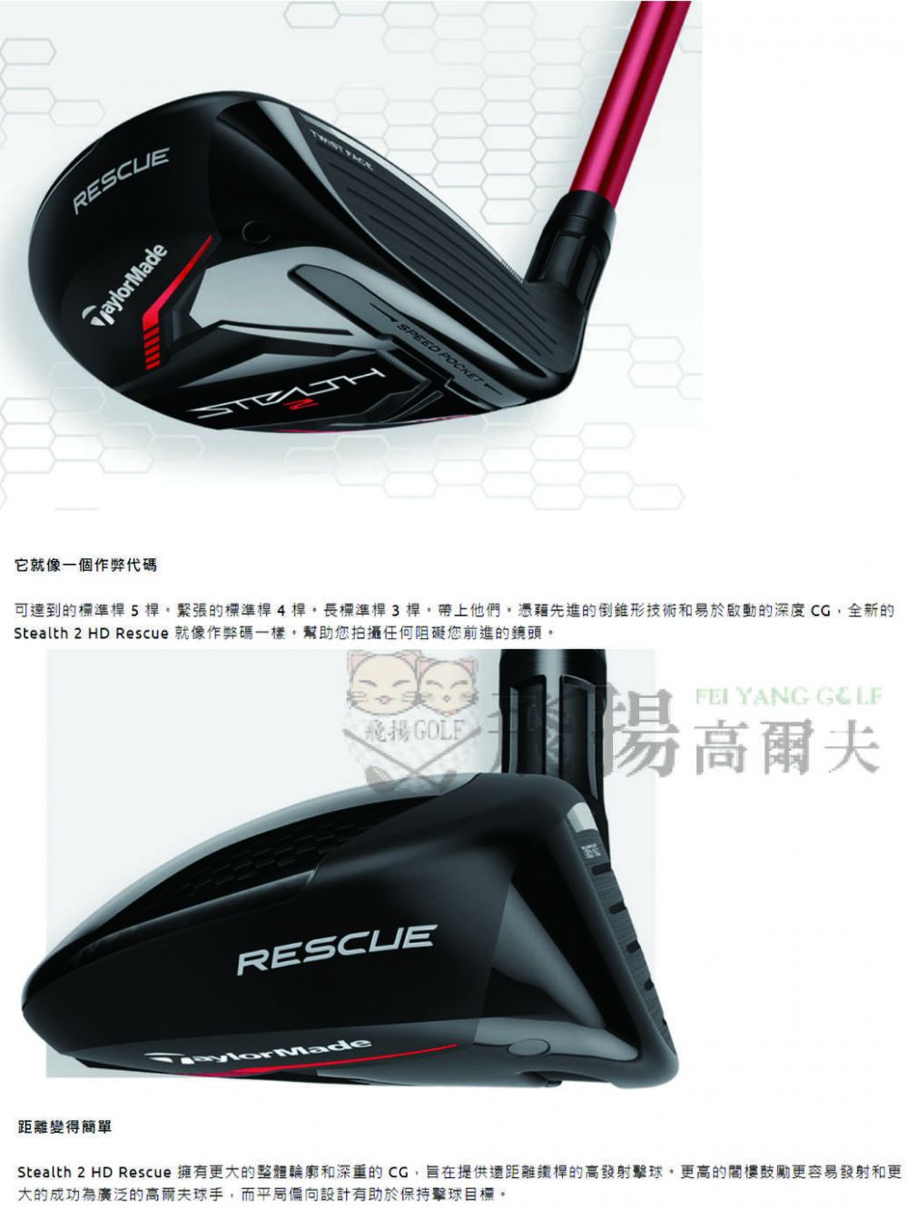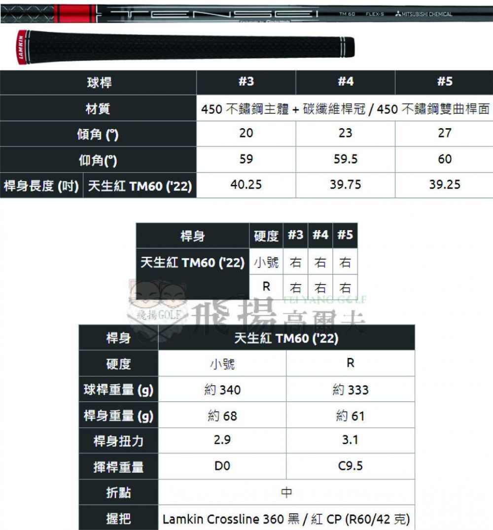 些微加大的桿頭搭配低且深的重心可創造高起飛角與更易打的效果,適合各種差點的球友使用,較高傾角的桿頭可輕鬆起飛、提高上球道率
