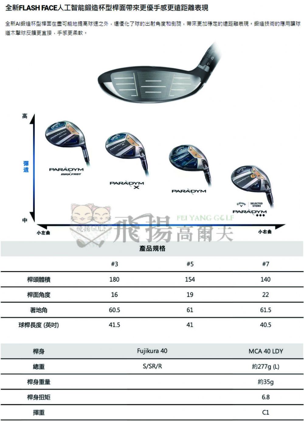 【飛揚高爾夫】2023 CALLAWAY 卡拉威 PARADYM MAX FAST MCA40 女仕 球道木桿