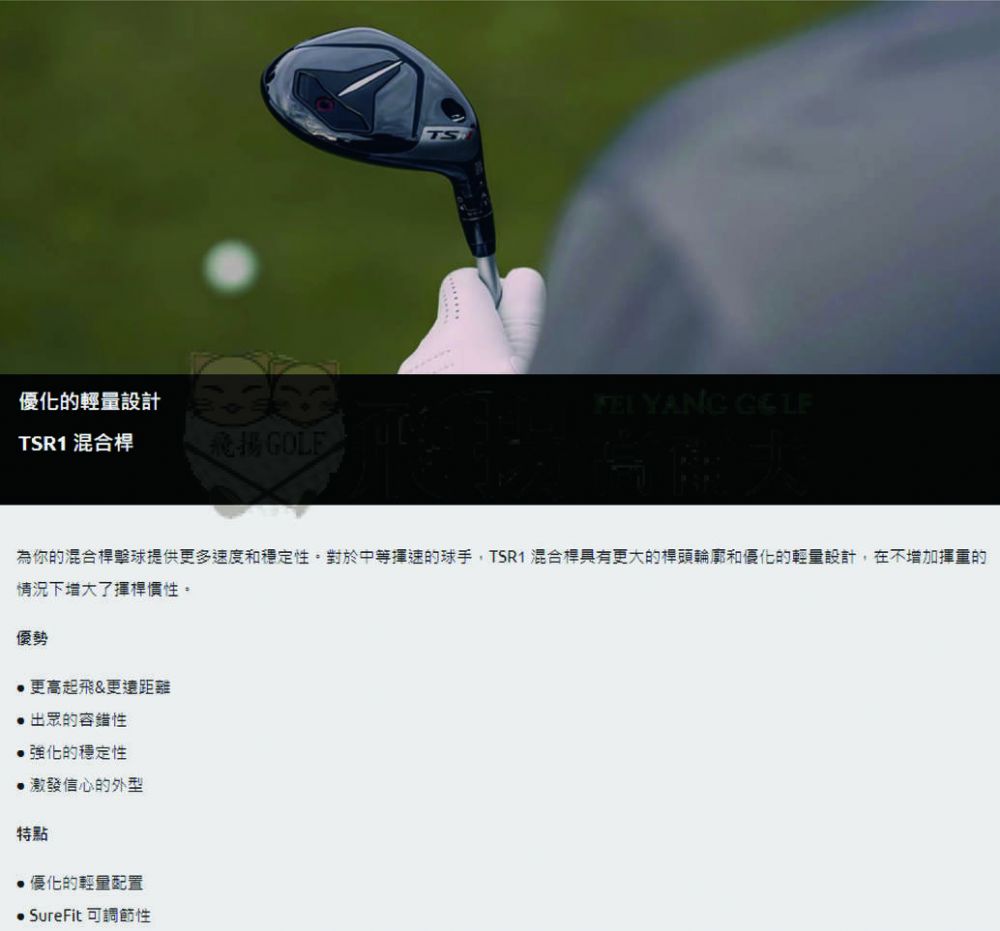 為你的混合桿擊球提供更多速度和穩定性。對於中等揮速的球手,TSR1 混合桿具有更大的桿頭輪廓和優化的輕量設計,在不增加揮重的情況下增大了揮桿慣性。