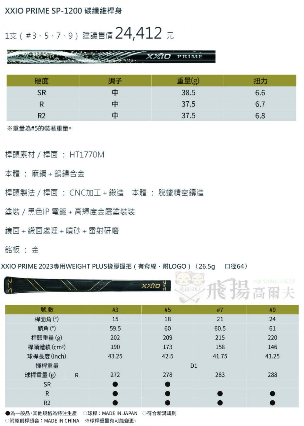 【飛揚高爾夫】XXIO PRIME FAIRWAY WOODS SP-1200 碳纖維桿身 球道木桿