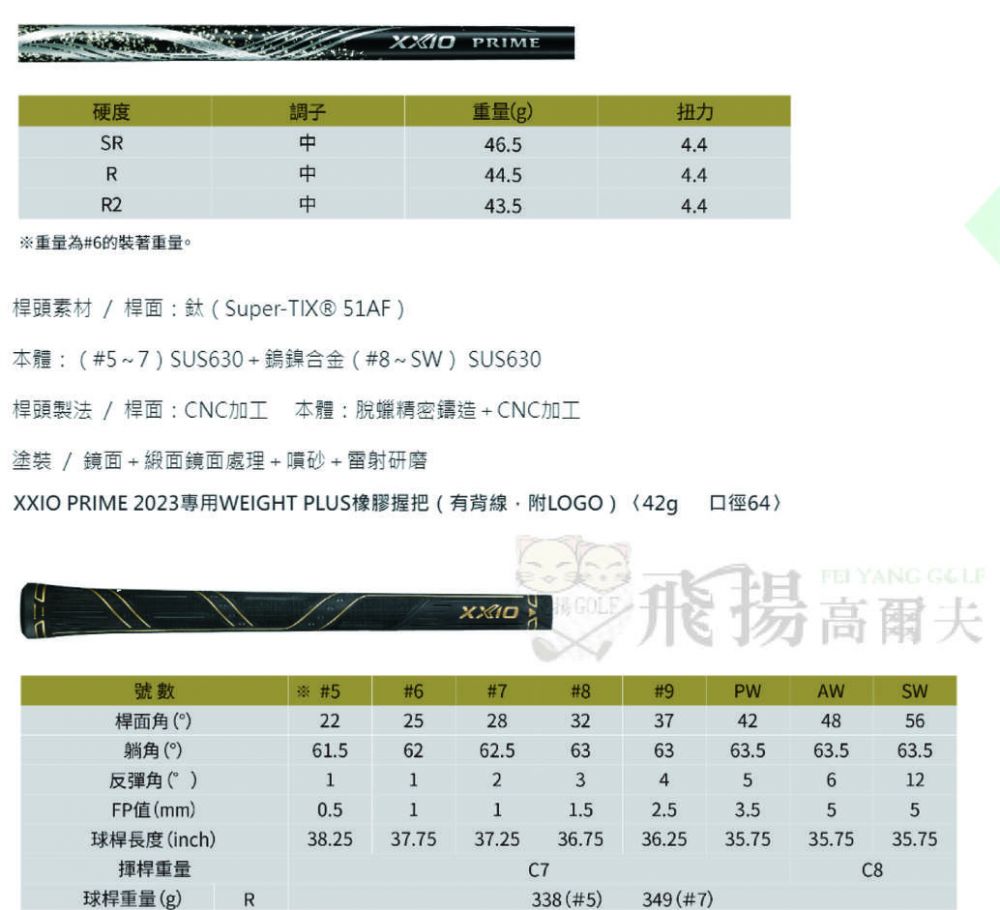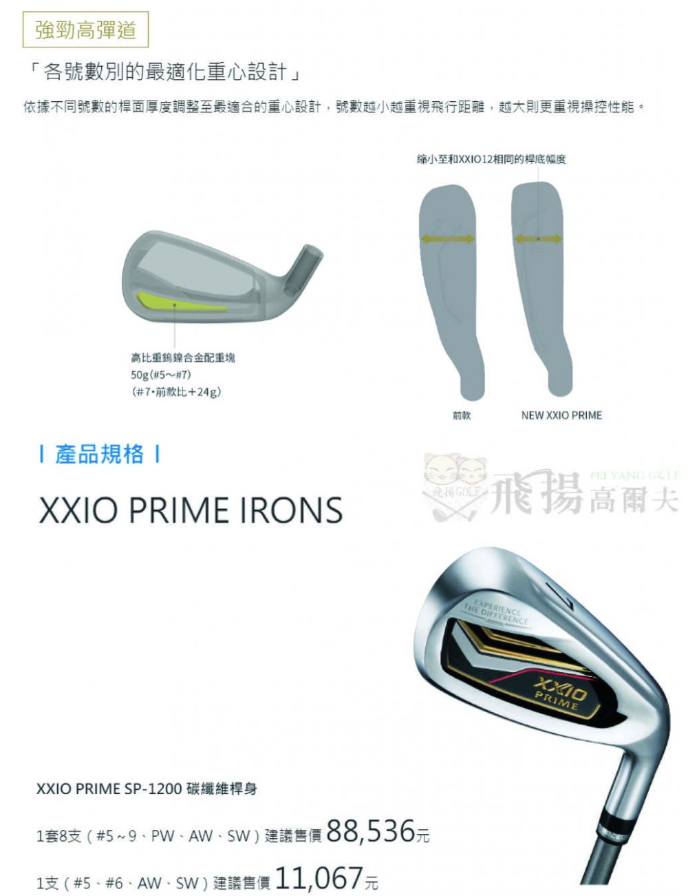 【飛揚高爾夫】XXIO PRIME SP-1200 碳纖維桿身 鐵桿#5~#9,+PW+AW+SW(共8支)