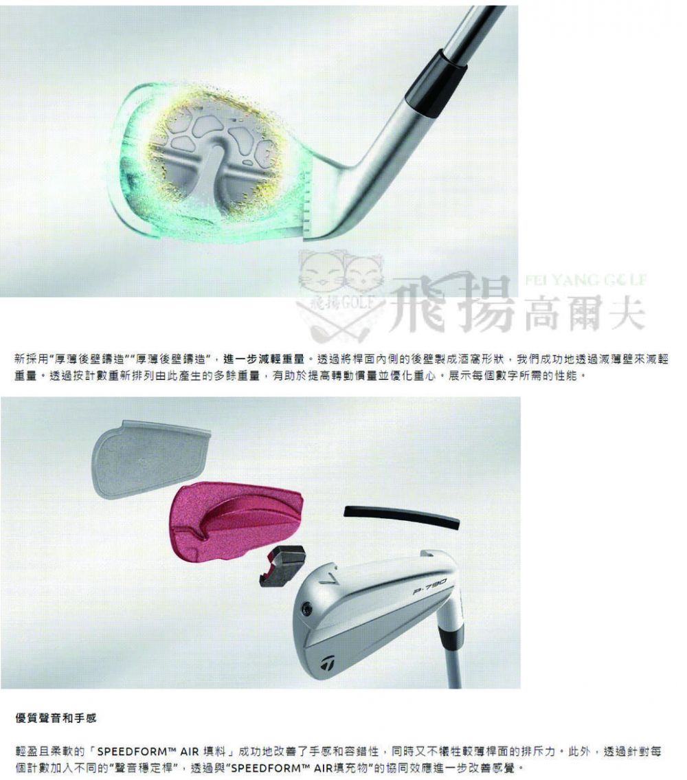 工程師研發全新結構以薄化球桿,將 31 克的鎢鋼配重放在趾部,大幅度提升球桿的穩定性與容錯性