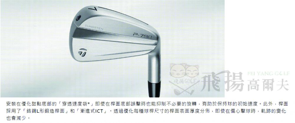 相較於前一代 P790,甜蜜點區域增加 60%,經數據分析,我們將甜蜜點移到桿面較低位置,更能自然地擊中球,並在球友需要時達到出色表現