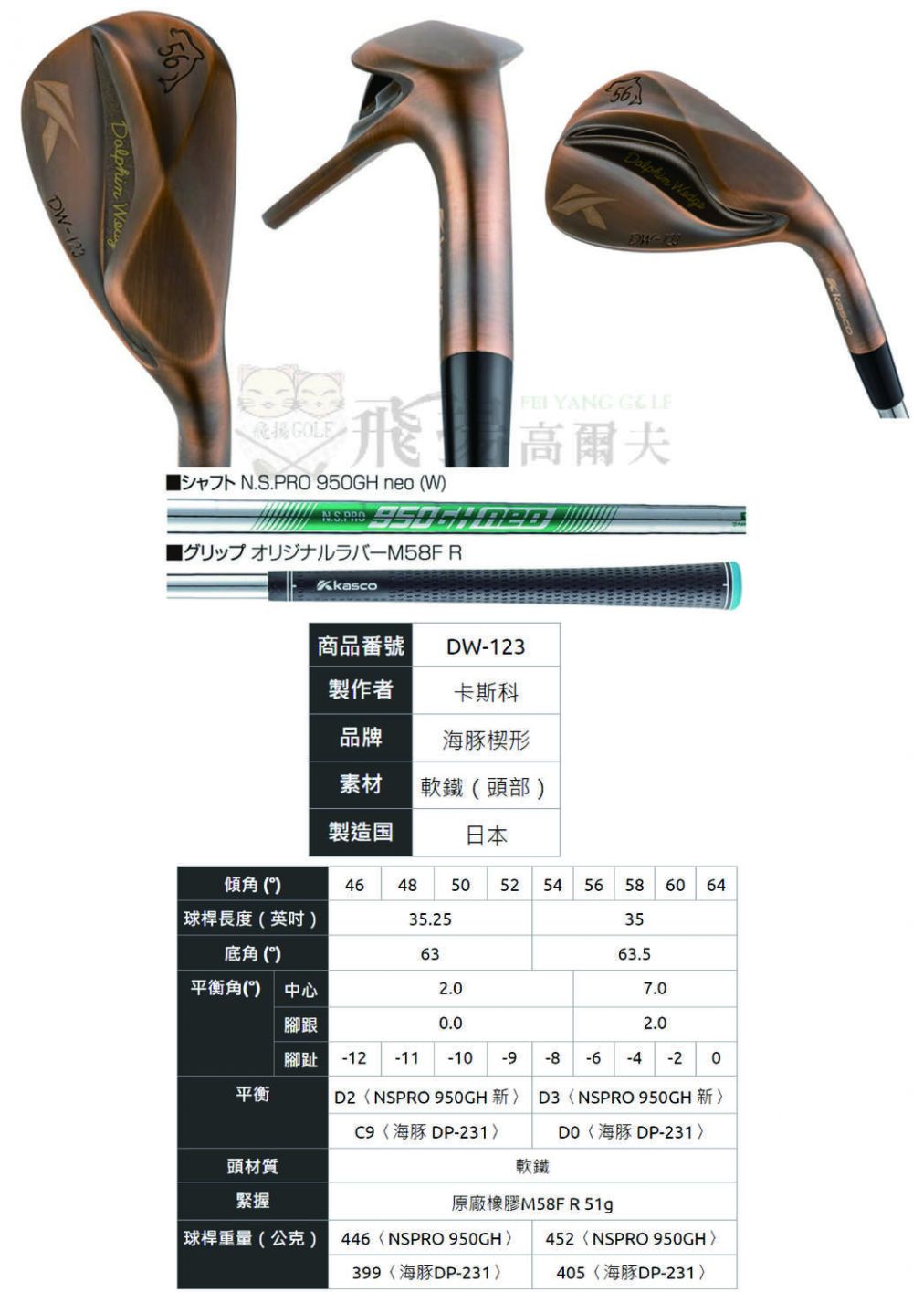 【飛揚高爾夫】NEW Kasco Dolphin Wedge DW-123 ( 銅色) 挖起桿