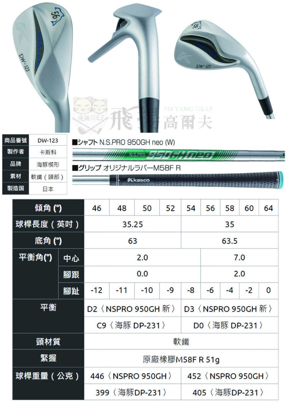 【飛揚高爾夫】NEW Kasco Dolphin Wedge DW-123鐵身NSPRO 950GH neo 銀色挖起桿
