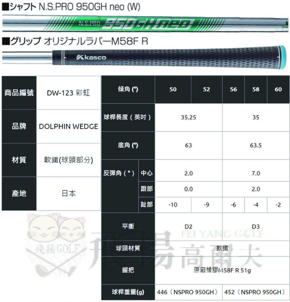 【飛揚高爾夫】'24 Kasco Dolphin Wedge DW-123 Rainbow,鐵身NSPRO 950GH neo(日規)(限量版)