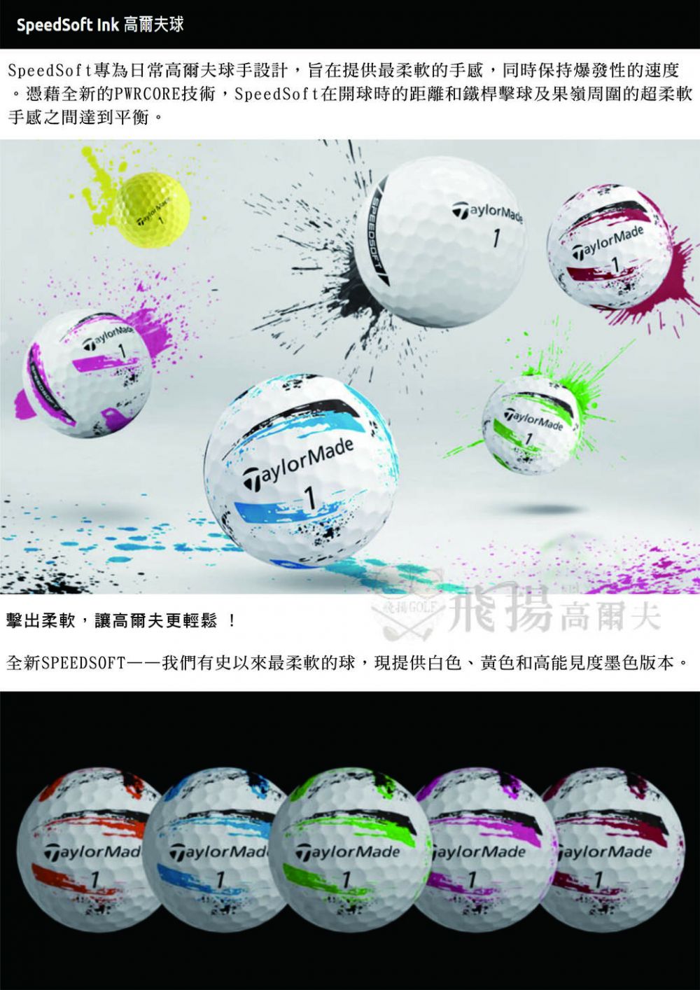 > 【飛揚高爾夫】'24 TaylorMade SpeedSoft Ink Golf Ball ,2-piece(12/DZ),Blue Ink V99145 (不含印)