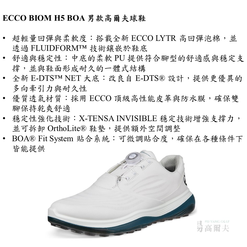 【飛揚高爾夫】ecco 男鞋(無釘) LT1 BOA #132274-61203 ,白土耳其藍