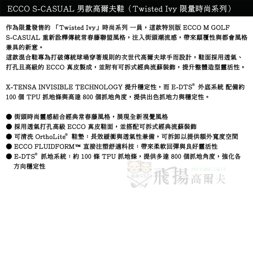 【飛揚高爾夫】ecco 男鞋(無釘) S-Casual #102824-61206 ,白/綠 (限量款)