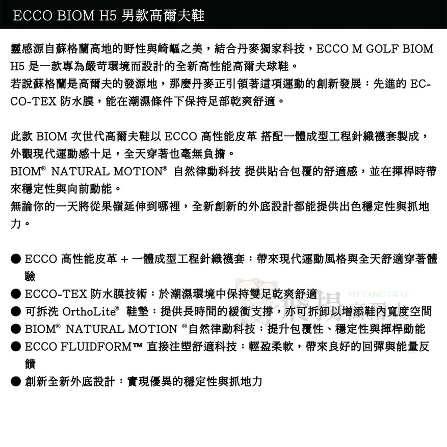 【飛揚高爾夫】ecco 男鞋(無釘) BIOM H5 #138014-01013 ,深灰