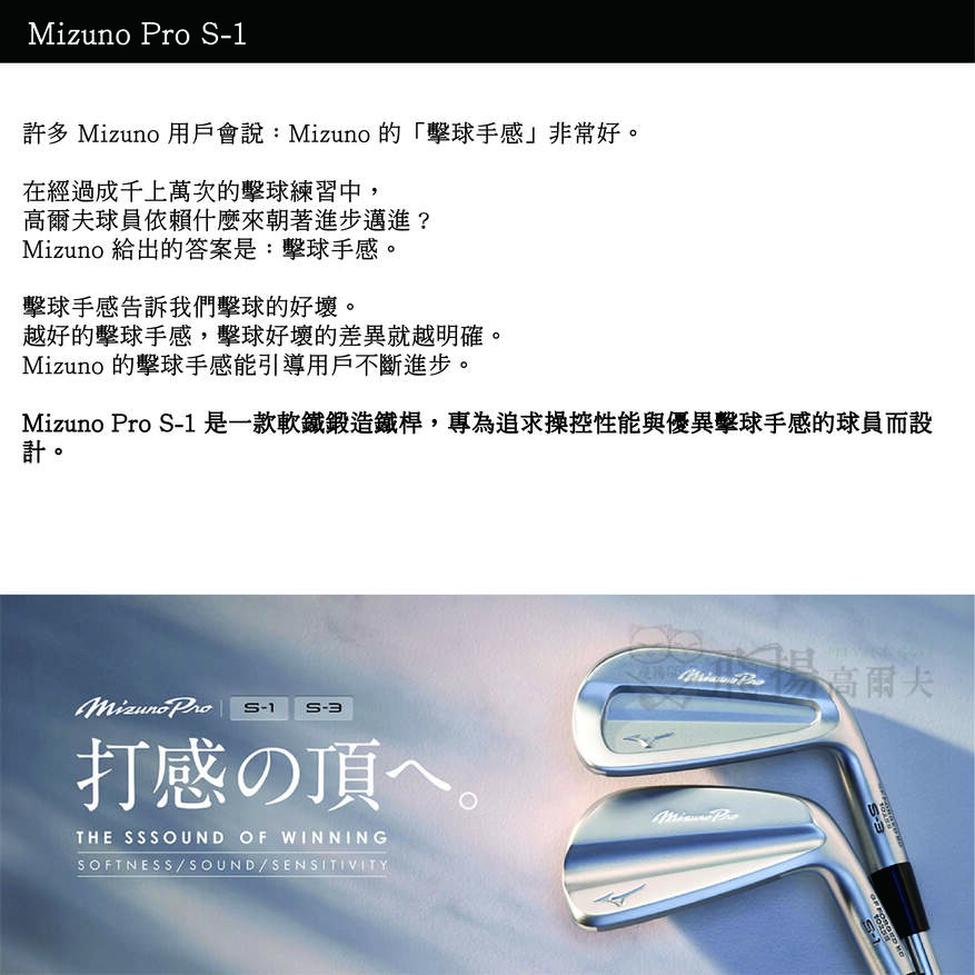 Mizuno Pro S-1 是一款軟鐵鍛造鐵桿,專為追求操控性能與優異擊球手感的球員而設計。