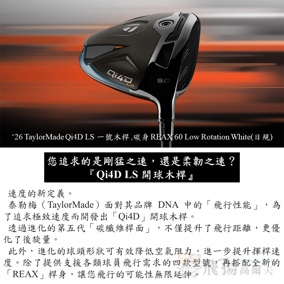 【飛揚高爾夫】'26 TaylorMade Qi4D LS 一號木桿 ,碳身REAX 60 (日規)